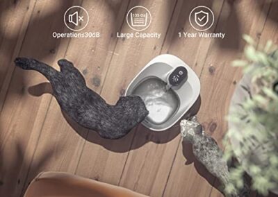 - Fonctionnement silencieux (moins de 30 dB) – La fontaine en métal pour animaux de compagnie est dotée d’une pompe basse tension fiable et dure généralement 2 à 3 ans.
