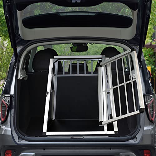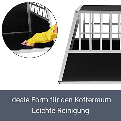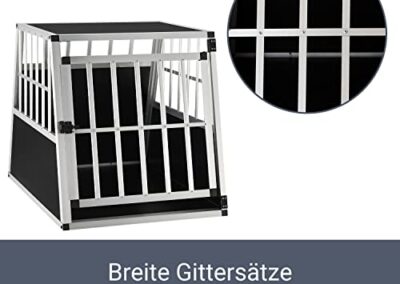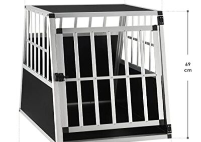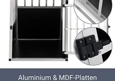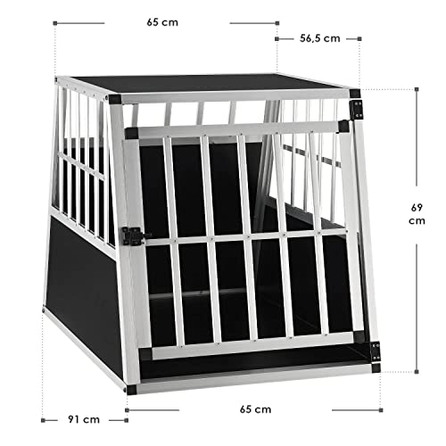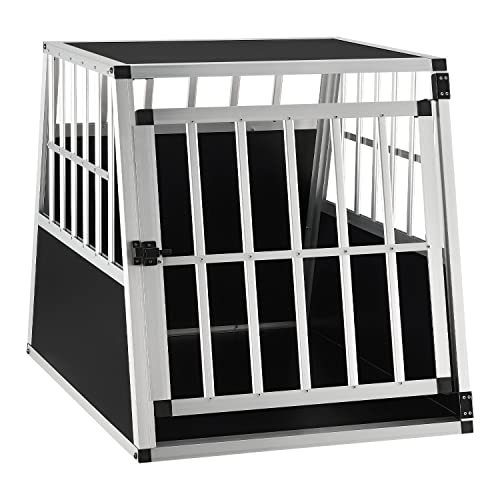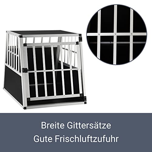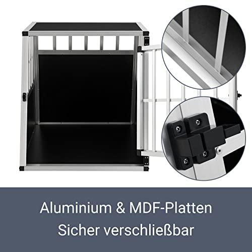 Juskys Alu Box de Transport pour Chiens L-X – 65 × 91 × 69 cm – Box pour Chiens de Voiture Robuste & Facile à Entretenir – Porte grillagée verrouillable – Box de Voyage en Aluminium pour Chiens