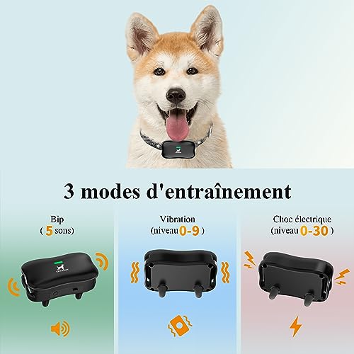 - 【Technologie de Mise à Niveau】 3 modes d’entraînement intime (bip, vibration 0-9, mode vibration 0-30). Les collier de choc pour chien peuvent vous aider efficacement et scientifiquement à dresser vos chiens. La lampe de poche de la télécommande (qui peut être allumée lorsqu’elle est éteinte) peut vous aider à trouver rapidement votre chien dans un environnement sombre.