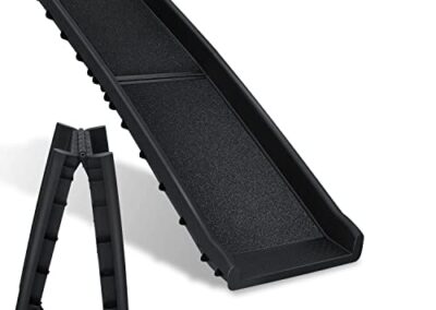 - 𝐏𝐎𝐋𝐘𝐕𝐀𝐋𝐄𝐍𝐓𝐄 : la rampe peut être utilisée partout, comme par exemple sur la voiture, le lit ou le palier. Le mécanisme de pliage pratique permet un montage et un démontage rapides. Une fois repliée, la rampe prend peu de place de rangement et se transporte sans problème. Elle peut être utilisée à l’intérieur comme à l’extérieur et peut supporter une charge maximale d’environ 90 kg