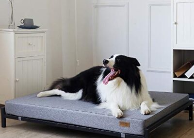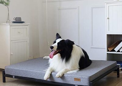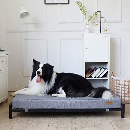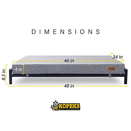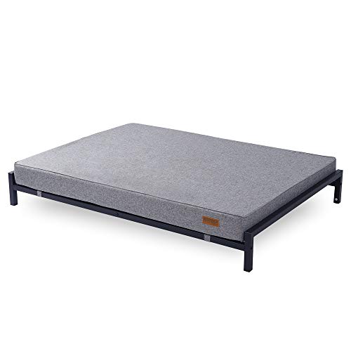 KOPEKS Lit surélevé avec matelas pour chiens et animaux de compagnie Taille XL – Gris et Noir