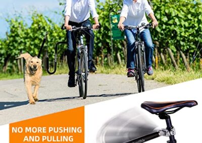 - BONNE RÉSISTANCE AU GLISSEMENT : La base de connexion laisse de vélo pour chien et le guidon à bascule sont livrés avec du caoutchouc et protègent votre vélo des rayures. Les ressorts en acier robustes absorbent jusqu’à 95 % de la traction du chien sans compromettre la stabilité du vélo et sans trop restreindre l’amplitude de mouvement du chien.
