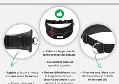 • Pourquoi une ceinture canicross lasaline ? Courir avec le chien ou le sport canin avec les deux mains libres. S’attache rapidement et facilement avec un seul fermoir. Le grand anneau avant sur la ceinture Canicross permet de fixer facilement une laisse ou une laisse Canicross en un seul clic. Les réflecteurs le long de la sangle assurent plus de sécurité à tout moment de la journée