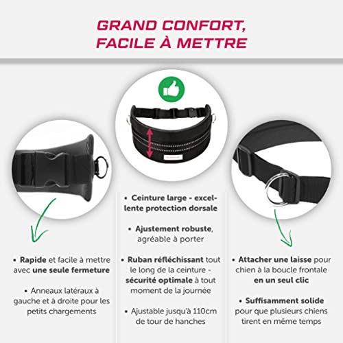 • Le plaisir pour tous : une expérience heureuse avec votre chien pour tous les amoureux des chiens, débutants, sportifs amateurs ou professionnels. La ceinture de jogging pour chien est réglable en continu jusqu’à 110 cm de tour de hanche. Sur l’anneau avant de la ceinture ventrale, on peut attacher une laisse pour chiens de grande taille ou de petits chiens. La laisse pour ceinture ventrale LASALINE est conçue de telle sorte qu’elle apporte de bonnes performances et un grand confort et apporte beaucoup de plaisir