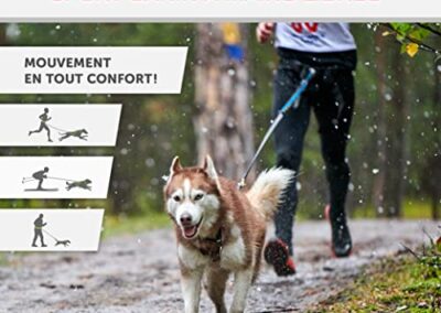 • Plus de chiens – plus de plaisir. Notre ceinture de jogging permet de faire du sport ou du jogging avec votre chien même avec plusieurs chiens. Pour ce faire, il faut une ceinture Canicross avec laisse pour 2 ou 3 chiens, qui ne peut être fixée sur l’anneau avant que d’un seul clic. Grâce aux anneaux situés sur le côté droit et à gauche, d’autres amis à quatre pattes peuvent marcher ou marcher à côté. Attention : Utilisez les anneaux latéraux uniquement pour une traction facile