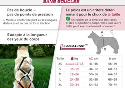 - HARNAIS DE TRACTION POUR CHIEN : Le harnais de traction pour chien LASALINE a été développé pour les sports canins et convient parfaitement pour le CANICROSS – CANI VTT – comme harnais de traîneau. Ce harnais de traction pour chien est souvent appelé harnais canicross, harnais de chien de traîneau, harnais husky ou harnais cani vtt. Lasaline harnais de traction est également recommandé pour la randonnée en montagne, les circuits ou les longues promenades en montagne !