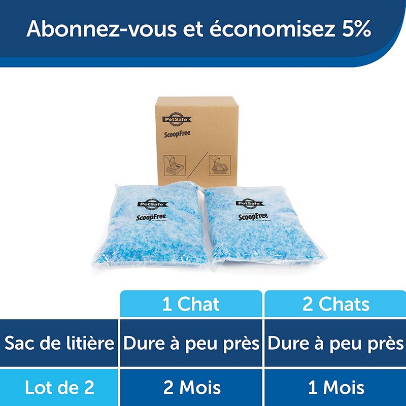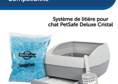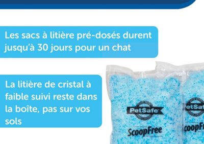 A utiliser avec les bacs à litière autonettoyants ScoopFree ou tout bac à litière traditionnel. Le lot de 2 paquets de litière en cristal ScoopFree Sensitive Sensitive PetSafe est fourni avec 2 sacs pré-dosés de litière en cristal non agglomérants, sans colorants ni parfums ajoutés.