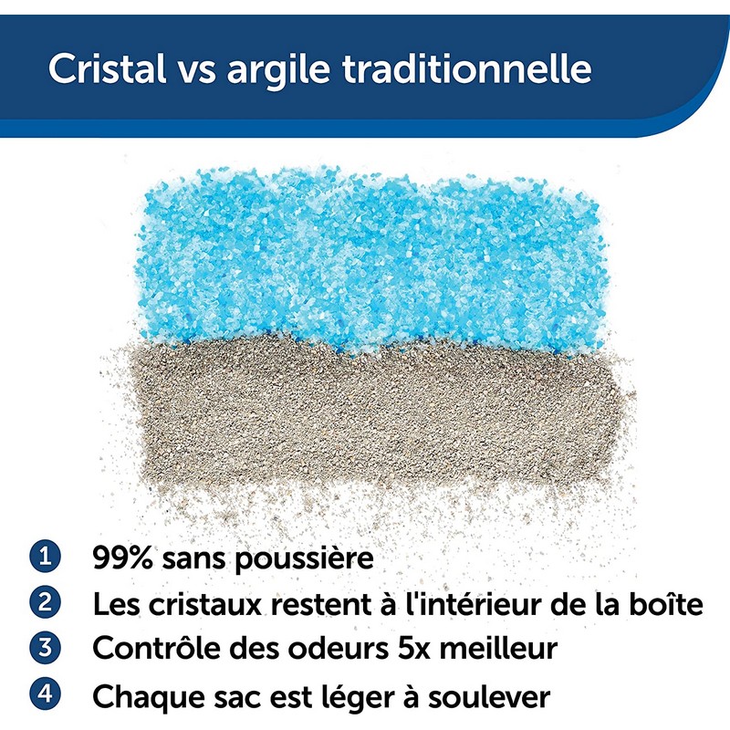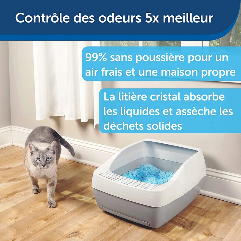 Un contrôle des odeurs 5 fois meilleur: absorbe les liquides et assèche les déchets solides. Ne se disperse pas: la litière de cristal reste dans la boîte et pas sur vos sols. Léger: plus besoin de soulever de lourds sacs ou bacs de litière.