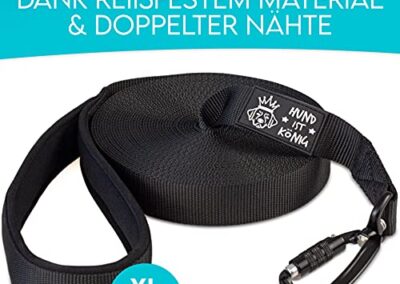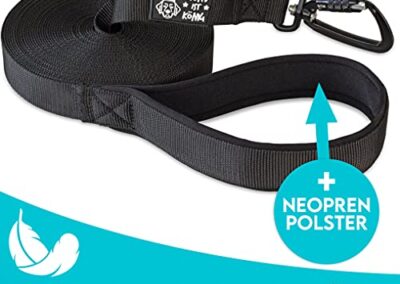 • Avec notre laisse de 5 m pour chien, vous pouvez laisser à votre chien un plus grand rayon de mouvement pour renifler et jouer. L’entraînement de rappel peut également être assuré avec la laisse de ski de fond. Vous gardez toujours le contrôle