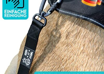 • Le mousqueton de sécurité stable avec fermeture à vis empêche une ouverture accidentelle lorsque le chien roule sur le dos. La poignée rembourrée douce prévient les coupures des paumes