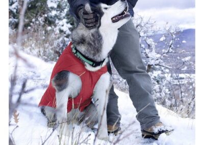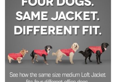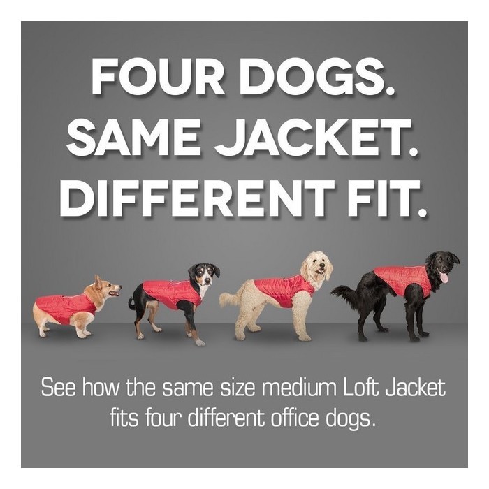 Ce Manteau pour chien peut être utilisée des deux côtés. Elle est fabriquée à partir d’un matériau robuste Microtomic Ripstop. Le matériau de remplissage est en Polytech. La jaquette convient aux chiens urbains et ruraux. Le matériau est hydrofuge. La jaquette a une ouverture à glissière pour que vous puissiez facilement accrocher le harnais ou le collier de votre chien. Loft Thermo Jaquette est conçue pour les chiens actifs qui aiment courir et se balader tous le temps. La ligne de côté de la veste donne au chien plus de liberté de mouvement. La jaquette est conçue pour garder le centre du corps du chien au chaud et au sec et ne couvre donc pas tout le dos de la plupart des chiens.