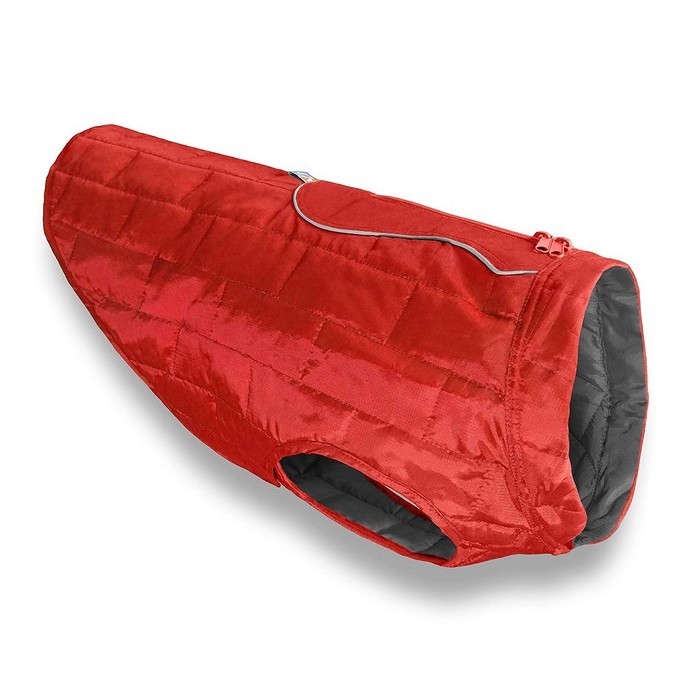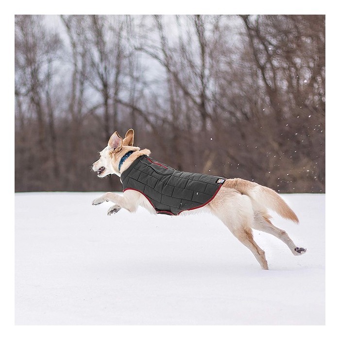 Ce manteau pour chien complétement réversible, est fabriqué à partir de matériaux microfibres et de 140 g de rembourrage. Imperméable et lavable en machine. Deux points d’ajustement pour un confort parfait. Bande réfléchissante pour une bonne visibilité par n’importe quel temps. Une fermeture dorsale permet l’accès au harnais ou au collier du chien.