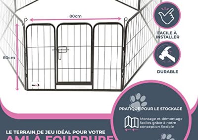 - CLOTURE POUR PARC À CHIOT ET CHAT – Utilisation flexible, idéale pour chiens, chats, et lapins, enclos léger et facile à monter.
