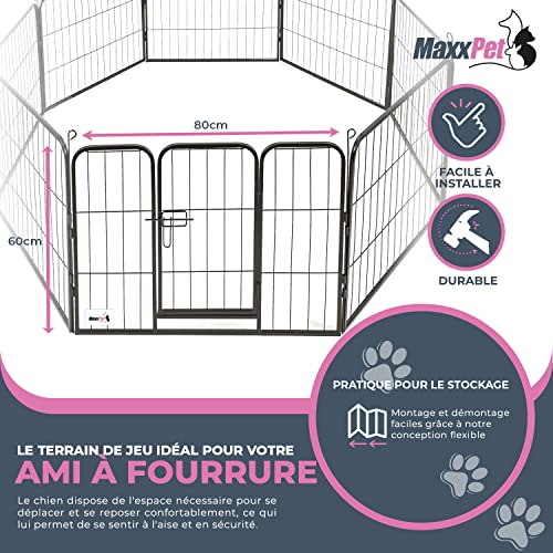 MaxxPet Enclos pour Chien – Parc à Chiot Métal – Enclos Lapin – Pliable avec 8 Panneaux – 60×80 cm – Parc Chat – Clôture pour Intérieur et Extérieur – 210cm – Noir