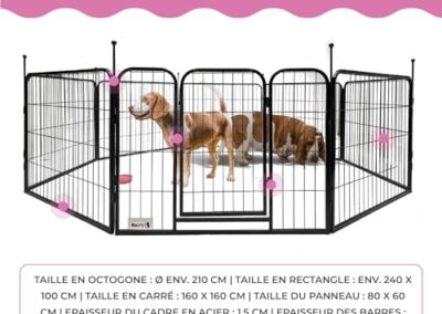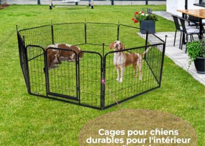 - PARC À CHIOT MÉTAL AVEC 8 PANNEAUX – Conçu en métal robuste, ce parc est pliable et pratique à ranger, avec des panneaux de 60×80 cm.