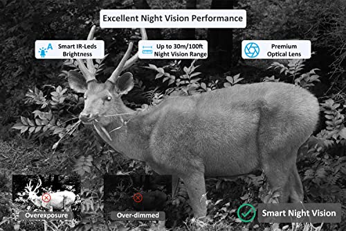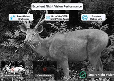 - Performance de vision nocturne parfaite : Utilise la technologie infrarouge 940 nm no-glow améliorée, rendant votre caméra plus furtive et inaperçue par les animaux sauvages, une technologie intelligente de luminosité infrarouge pour éviter la surexposition, offrant une vision nocturne claire et équilibrée.