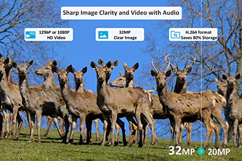 - Image et vidéo ultra-claires avec audio : équipé d’un objectif optique haut de gamme pour fournir des photos haute résolution de 32 MP et des vidéos 1296p ou 1080p avec audio. L’utilisation de H.264 fournira également une économie totale de 30 à 80 % sur l’espace de stockage par rapport aux formats de compression conventionnels.