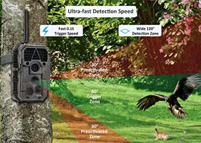 - Vitesse de déclenchement rapide de 0,1 s et plus de fonctionnalités : équipé de 3 capteurs PIR super sensibles pour activer le déclencheur de la caméra en 0,1 s dès que l’animal entre dans le champ de détection. IP66 étanche et boîtier compact conçu pour une utilisation extérieure plus fiable.