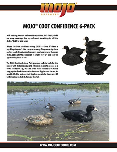 MOJO Coot Confidence Lot de 6 leurres pour pêche au canard avec accessoires pour accroître le réalisme et attirer les canards vers la terre