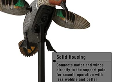 - Le boîtier solide relie le moteur et les ailes directement au poteau de soutien, il est durable, silencieux et minimise les cliquetis
