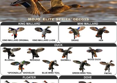 Morillon à ailes tournantes Mojo Elite Series : – La nouvelle gamme Elite Series de Mojo présente une construction totalement innovante. Le moteur et la batterie du canard à ailes tournantes sont hébergés dans un boitier en plastique, directement relié au piquet de support de la blette. La forme du canard est totalement désolidarisée du bloc moteur, de cette manière, les vibrations et bruits ont totalement disparus. De la même manière que l’on peut retirer la carrosserie d’une voiture, le Morillon Mojo Elite Series peut fonctionner sans la blette qui l’entoure.