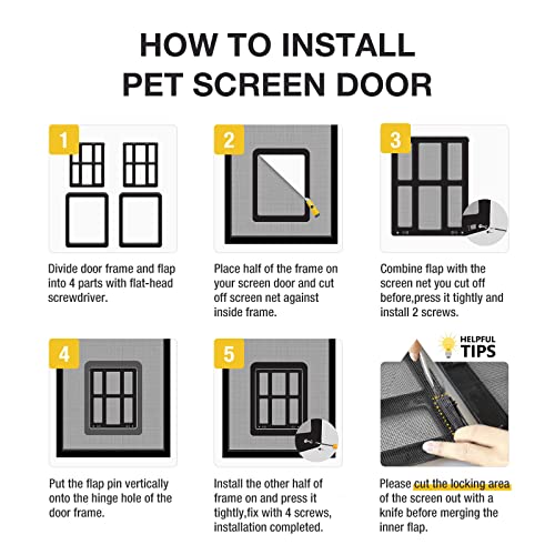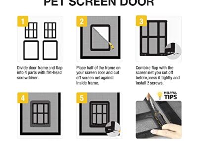 - Champ d’application: La porte pour animaux de compagnie convient à la porte moustiquaire, à la fenêtre moustiquaire ou à toute zone moustiquaire, instructions incluses dans l’emballage, facile à installer; le rabat intérieur ne contient pas d’écran, veuillez placer l’écran découpé dans le cadre du rabat intérieur.