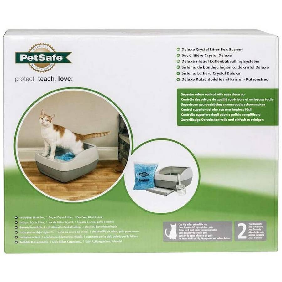 Le Bac à litière Crystal Deluxe de PetSafe™ est une boîte à litière tout-en-un, conçue pour fonctionner spécifiquement avec la litière Crystal. À mesure que votre chat utilise la boîte, la litière Crystal Premium PetSafe™ absorbe l’urine et dessèche les excréments solides pour un contrôle des odeurs 5 fois plus efficace que les litières agglomérantes à l’argile. Le bac est équipé d’un plateau amovible contenant un tapis absorbant qui retient l’urine que la litière Crystal n’absorbe pas immédiatement, ce qui renforce l’action anti-odeurs.