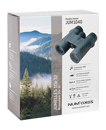 NUM’AXES – Jumelles JUM1040 10 x 32 – Garanties 30 Ans – Étanches – Traitées Antibuée – Transmission Optimale de la Lumière – Adaptables sur Trépied