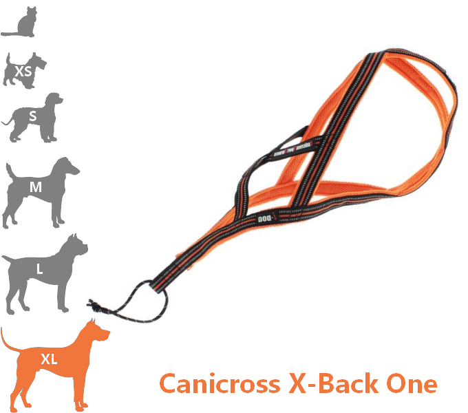 GAMME CANICROSS ONE Le harnais Canicross X-BACK pour grand chien de la gamme ONE destiné aux spécialistes du Canicross. Il est ultra léger et sa conception lui permet d’utiliser le maximum de la puissance de traction de votre chien. Le harnais est ainsi adapté pour la majorité des chiens mis à part ceux ayant une cage thoracique trop développée et un corps fin (Dobermann, braque de Weimar, levriers, dogues, boxers…).
