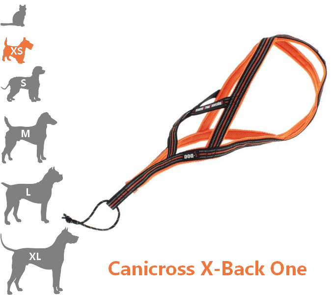 GAMME CANICROSS ONE Le harnais Canicross X-BACK pour très petit chien de la gamme ONE destiné aux spécialistes du Canicross. Il est ultra léger et sa conception lui permet d’utiliser le maximum de la puissance de traction de votre chien. Le harnais est ainsi adapté pour la majorité des chiens mis à part ceux ayant une cage thoracique trop développée et un corps fin (Dobermann, braque de Weimar, levriers, dogues, boxers…).
