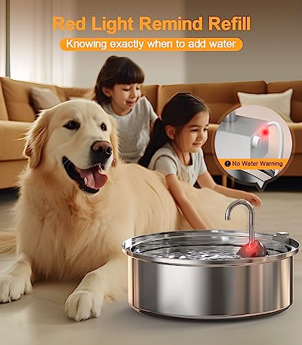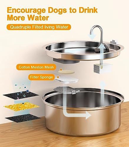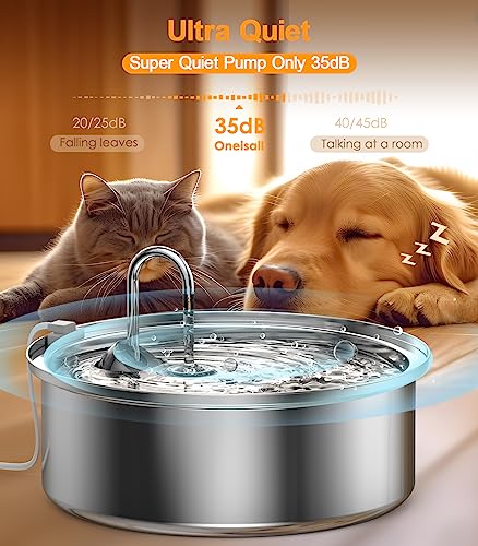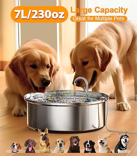 oneisall Fontaine pour Chien/Chat, Fontaine pour Chien en Acier Inoxydable 7L Super silencieuse avec Triple filtration et Pompe de sécurité Intelligente/Facile à Assembler et à Nettoyer