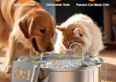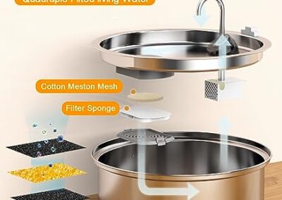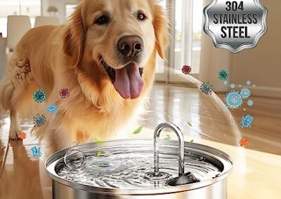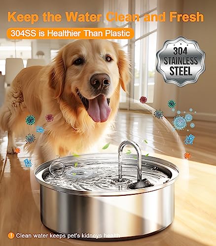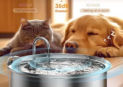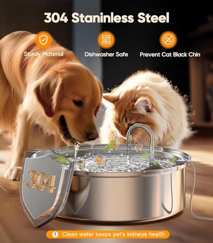 - 🐶👍【Acier inoxydable 304 pour la propreté et la fraîcheur】 La fontaine à eau pour chien Oneisall est fabriquée en acier inoxydable 304 et est exempte de bisphénol A, ce qui protège la santé de votre animal. Cette fontaine utilise une circulation dynamique de l’eau pour ajouter de l’oxygène et garder l’eau fraîche, ce qui est bénéfique pour la santé des reins et des voies urinaires. Vous devriez choisir une fontaine pour chien en acier inoxydable 304.
