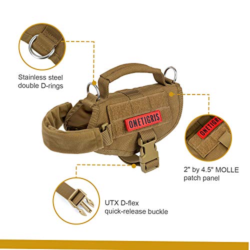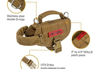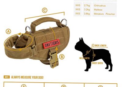 - Gilet pour chien de style militaire : design en nylon 1000D pour une meilleure durabilité et résistant à la poussière, imperméable à l’usure, design à enfiler à l’avant avec fermetures rapides UTX Duraflex ; sangles avant rembourrées en polaire pour éviter les frottements et l’inconfort