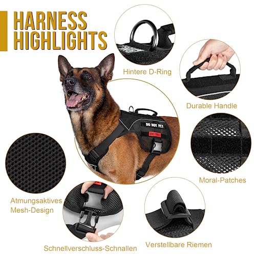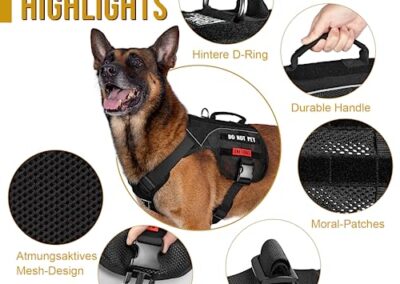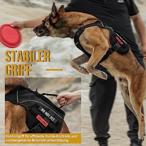 - Poignée de contrôle vertical : harnais pour chien avec poignée robuste pour un contrôle efficace du chien et un soutien temporaire de la mobilité (entrée et sortie de voitures, bateaux, piscines, etc.)