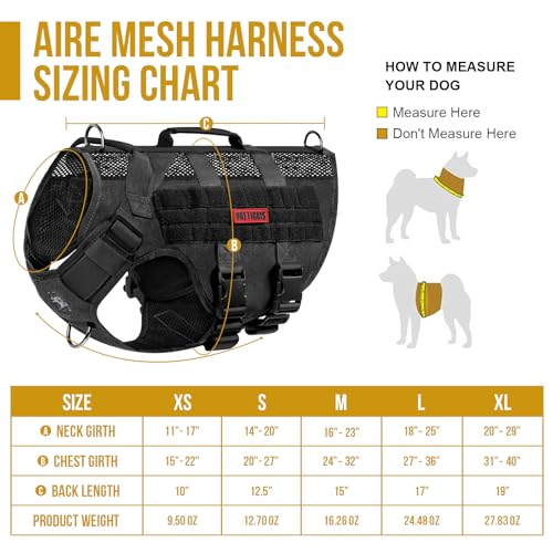 OneTigris Harnais pour Chien, Aire Mesh Tactique Harnais, Harnais Réglable pour Chiens Adapté aux Chiens de Taille Moyenne/Grande, avec Deux Poignées Confortables – Noir M
