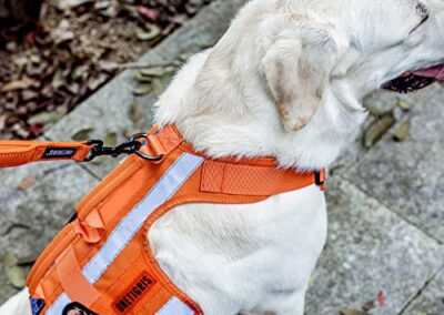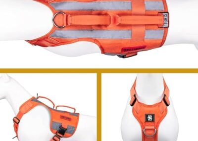 • Double anneaux en D à l’avant de la poitrine et à l’arrière pour des laisses de contrôle de la circulation sans traction et des laisses d’exploration plus longues.