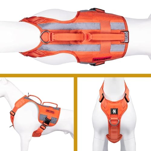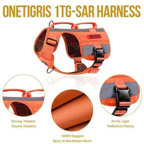 OneTigris Harnais Tactique réfléchissant pour Chien sans Traction, Gilet pour Chien de Service avec poignée, Gilet de sécurité léger Haute visibilité pour Chien de Recherche et de Sauvetage