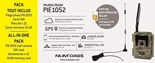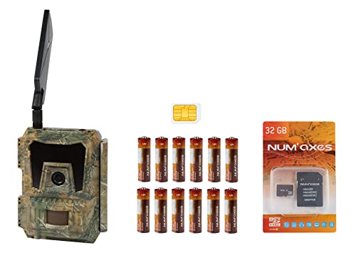 Pack Tout Inclus : PIÈGE Photographique NUM’AXES PIE1052 + Piles + Carte MÉMOIRE + Carte SIM