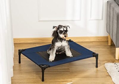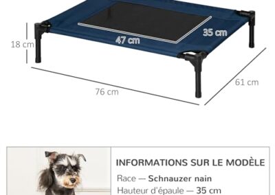 PawHut Lit pour Chien Chat lit de Camp Grand Confort sur Pieds Tissu Oxford textilène Micro-perforé 76L x 61l x 18H cm Bleu Marine Noir