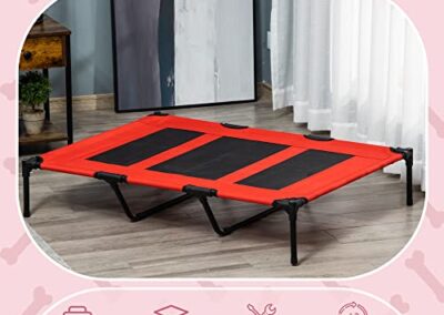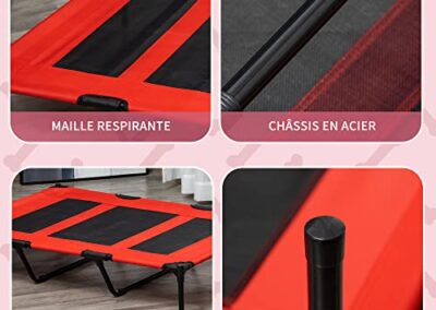PawHut Lit sur Pieds XXL pour Chien Chat lit de Camp Animal 122L x 92l x 23H cm Rouge