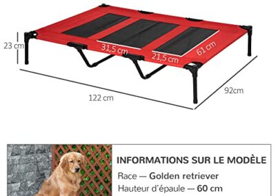 • Lit sur pieds XXL surélevé idéal pour tenir votre chien à l’écart de l’humidité éventuelle du sol et des insectes : confort optimal de repos pour votre animal