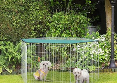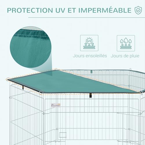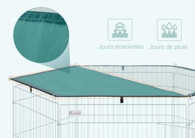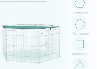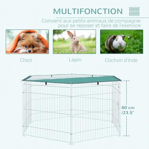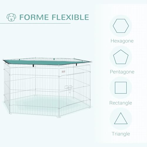PawHut Parc enclos modulable Acier 6 Panneaux et 1 Porte pour Chiens Lapins rongeurs Petits Animaux intérieur et extérieur Ø 120 x 60 cm Gris métal Vert