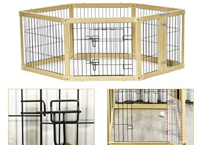 - CONSTRUCTION SOLIDE : Cage pour chien anti-corrosion en composite bois-plastique et fil d’acier, sans odeur et offrant également une résistance élevée pour une utilisation quotidienne. Le parc à chien comprend des loquets centraux pour connecter deux clôtures.