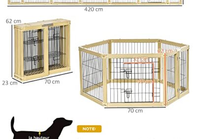- SPÉCIFICATIONS : Dimension totales : 420L x 62H cm. Dimensions chaque panneau : 70L x 62H cm. Dimensions porte : 32l x 45H cm. Aucune installation requise, il est prêt à l’emploi.