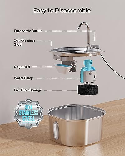 • Qualité supérieure : fabriquée en acier inoxydable de haute qualité, notre fontaine à eau pour chat assure une durabilité durable et une résistance à la rouille. Sans BPA et passe au lave-vaisselle, facile à nettoyer