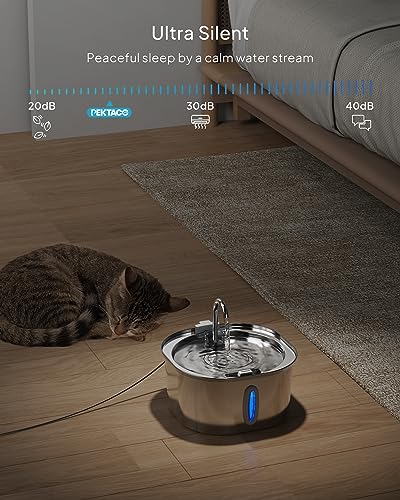 • Super silencieuse : conçue avec une pompe de 15 W, cette fontaine à eau fonctionne à un niveau sonore inférieur à 25 dB, offrant une expérience de boisson sereine pour votre animal de compagnie. Dites adieu aux distractions bruyantes, permettant à votre chat de boire et de se détendre sans aucune perturbation