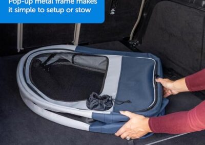 PetSafe Cabine de voyage pliable pour animaux jusqu’à 27 kg, se plie pour un rangement facile, doublure molletonnée,Lavable en Machine, 2 Poches de Rangement, Gris/Bleu étanche, lavable à la machine