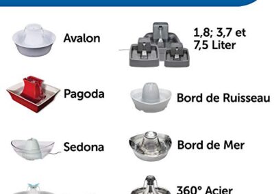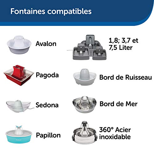 • COMPATIBLE: Avec les fontaines pour animaux en acier inoxydable 360 et Bord de mer les fontaines Drinkwell Avalon, Pagoda, Sedona et Papillon, 1,8L, 3,7, et 7,5 L et en céramique Bord du ruisseau