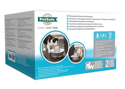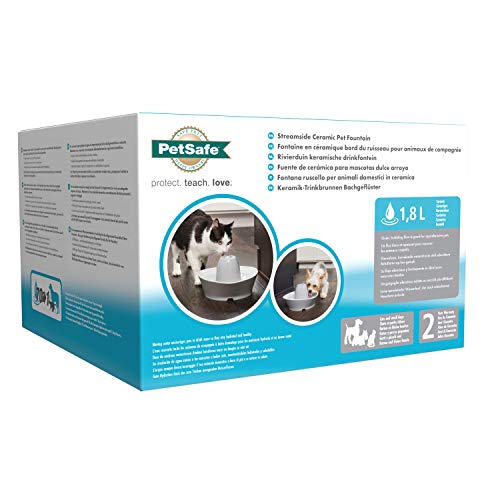 PetSafe Fontaine en Céramique Bord du Ruisseau pour Animaux de Compagnie 1,8 L – idéal pour Chat et Petit Chien, silencieuse, Eau filtée, sans BPA, Encourage Les Animaux à Boire Plus