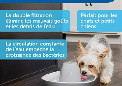- PROTECTION SANTÉ : une eau fraîche et effervescente encourage les animaux à boire: il reste ainsi hydraté et cela contribue à prévenir les maladies urinaires et rénales